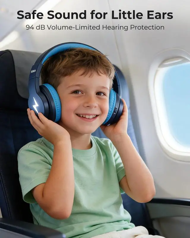 ^^ Comfortable and Adjustable Fit for Kids & Family -- This childrens Bluetooth headphones ear cushions adopt Seenda's memory foam tech. Unlike ordinary foam ear cushions, it fits kids delicate ears perfectly, conforming adaptively without irritating their sensitive skin. The adjustable headband suits 3-18-year-old kids and adults, enabling whole-family sharing. It meets wearing needs in scenarios like kids online classes, daily entertainment and family commutes, bringing comfortable experience for all users.