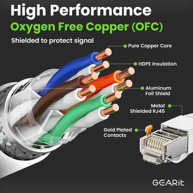 • Reject Compromise With Oxygen Free Copper - This outdoor Ethernet cable offers Cat6 speeds up to 10 Gbps and 600 MHz thanks to shielded foil twisted pairs of high-quality oxygen free copper wire for a consistent, clean connection over any distance. That