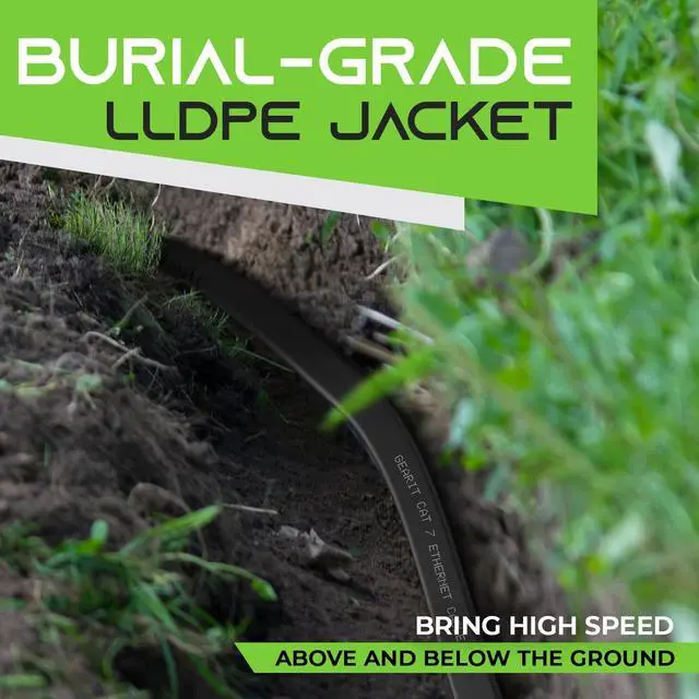 UV, Weatherproof & Direct Burial - Introducing our Cat6 outdoor/interior cable, engineered to brave the elements with UV and weather resistance, ensuring durability in any environment. This FLAT cable sets a new standard in the market, featuring an LLDPE rated jacket specifically designed for outdoor and direct burial installations. Its flat design offers a notable advantage over traditional round cables, being lighter and thinner for effortless threading through conduits and underground.