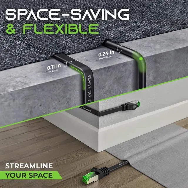 Space-Saving & Flexible - Our FLAT RJ45 cable is tailored for high-density environments, offering the flexibility and space-saving benefits of a flat cord design. Perfect for discreet installa