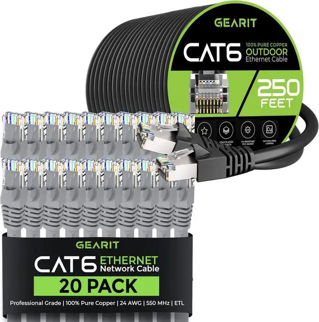 20Pack 5ft Cat6 Ethernet Cable & 250ft Cat6 Cable