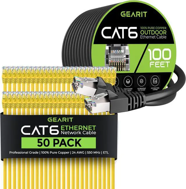 GearIT Outdoor Cat6 Patch Cables.Thanks to its rugged PVC jacket, this cable is perfect for direct burial in the ground. It withstands low and high temperatures, dust, and dirt.