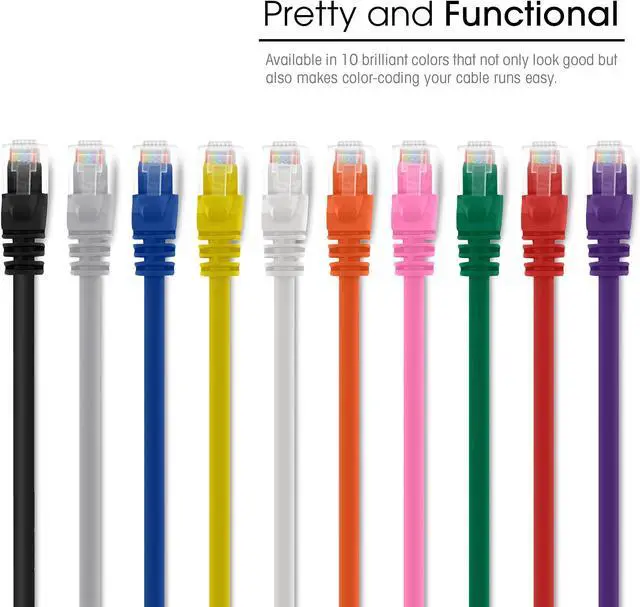 High-precision, Cat 6, ANSI/TIA-568-C.2 compliant, ETL verified, Ethernet LAN Patch Cable, pre-terminated with RJ45 connectors and available in a wide variety of colors for proper color coding of network connections