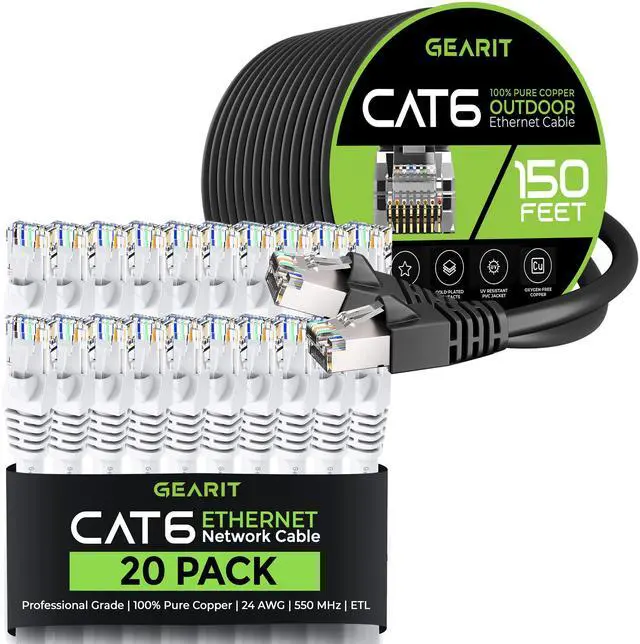 GearIT 20Pack 10ft Cat6 Ethernet Cable & 150ft Cat6 Cable