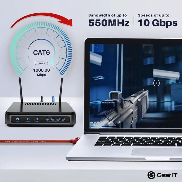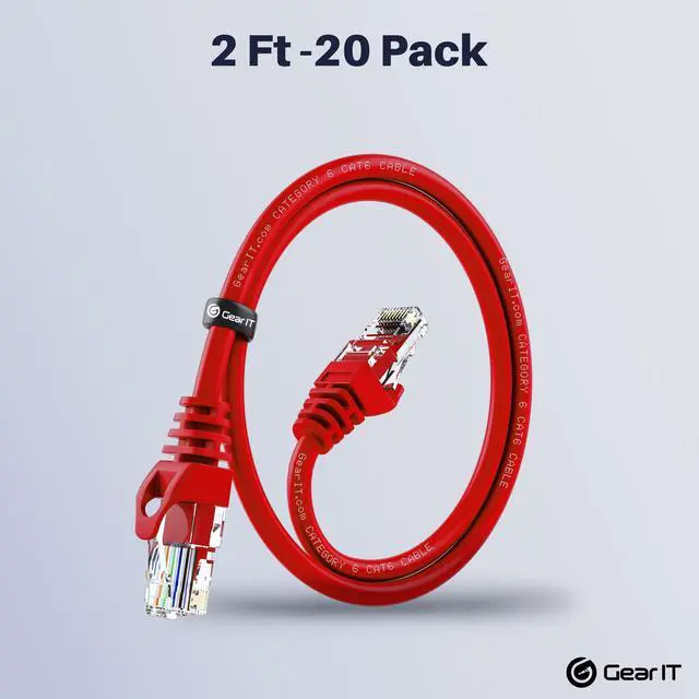 Future-proof your network for 10-Gigabit Ethernet with GEARit Cat 6 Network Patch Cables. With GEARit Cat6 cables, your network will be ready for the future and will still be working when you get there. Industry standard ANSI/TIA-568-C. 2, Cat 6, ETL verified cables with high compliance RJ45 (8P8C) snag-less connectors and molded strain relief boots. Bandwidth rating of up to 550 Mhz ensures compatibility with Ethernet 10BASE-T, 100BASE-TX (Fast Ethernet), 1000BASE-T (Gigabit Ethernet), 10GBASE-T (10-Gigabit Ethernet), Peer-to-Peer, and any other applications that utilize networking cables including telephony, home automation and long distance video transfer technologies like HMDI over Ethernet.