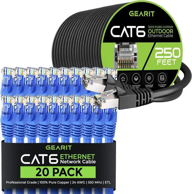 20Pack 3ft Cat6 Ethernet Cable & 250ft Cat6 Cable