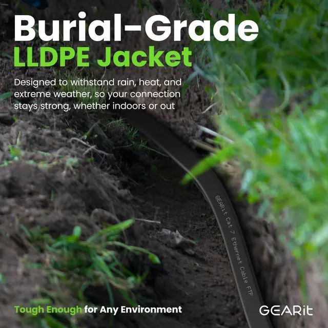 UV, Weatherproof & Direct Burial - Introducing our Cat6 outdoor/interior cable, engineered to brave the elements with UV and weather resistance, ensuring durability in any environment. This FLAT cable sets a new standard in the market, featuring an LLDPE rated jacket specifically designed for outdoor and direct burial installations. Its flat design offers a notable advantage over traditional round cables, being lighter and thinner for effortless threading through conduits and underground.