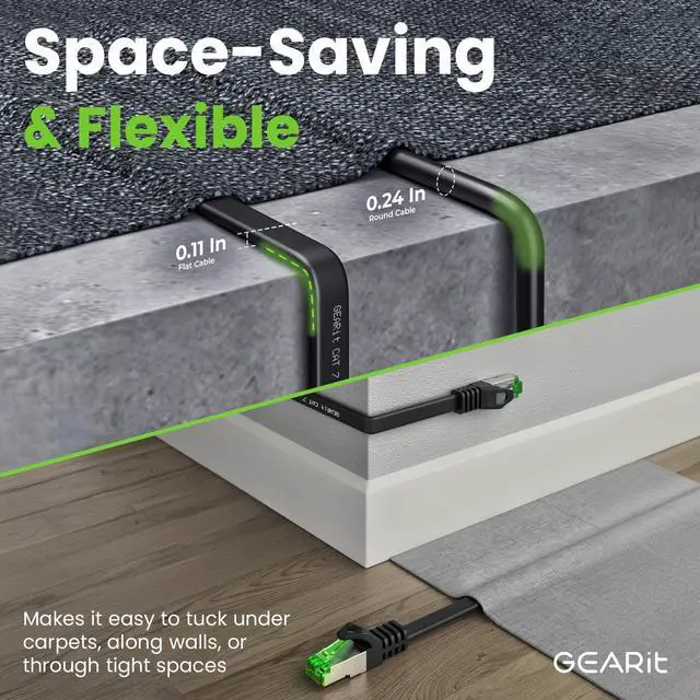 Space-Saving & Flexible - Our FLAT RJ45 cable is tailored for high-density environments, offering the flexibility and space-saving benefits of a flat cord design. Perfect for discreet installa