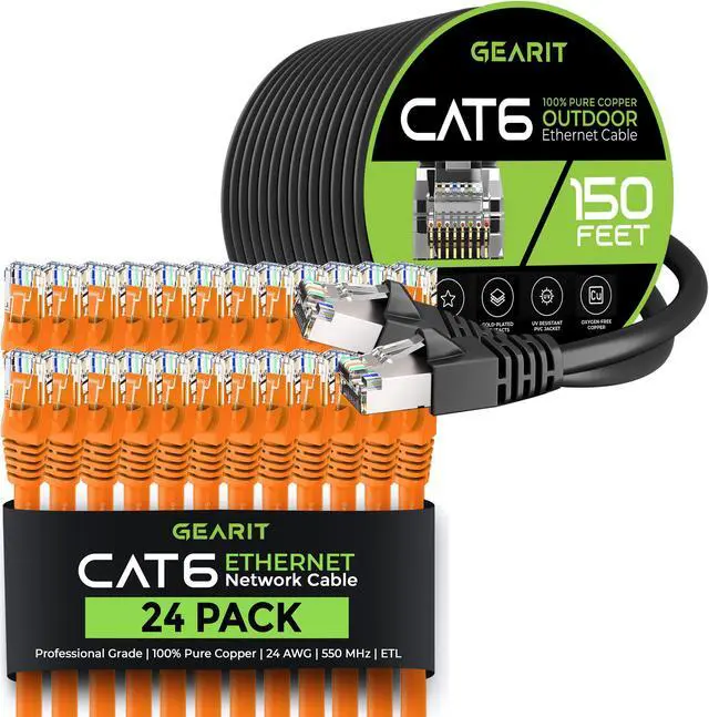 GearIT 24Pack 3ft Cat6 Ethernet Cable & 150ft Cat6 Cable