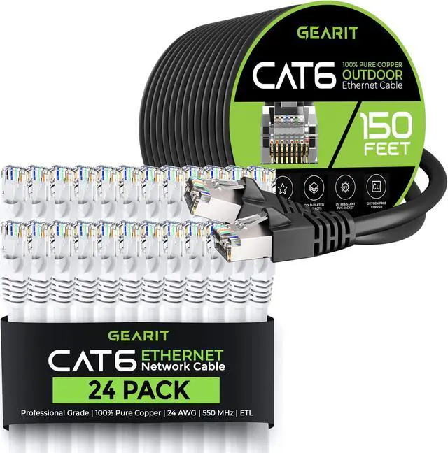 24Pack 7ft Cat6 Ethernet Cable & 150ft Cat6 Cable