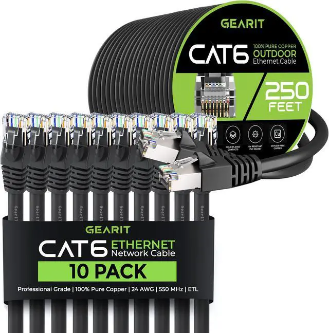 GearIT Outdoor Cat6 Patch Cables.Thanks to its rugged PVC jacket, this cable is perfect for direct burial in the ground. It withstands low and high temperatures, dust, and dirt.