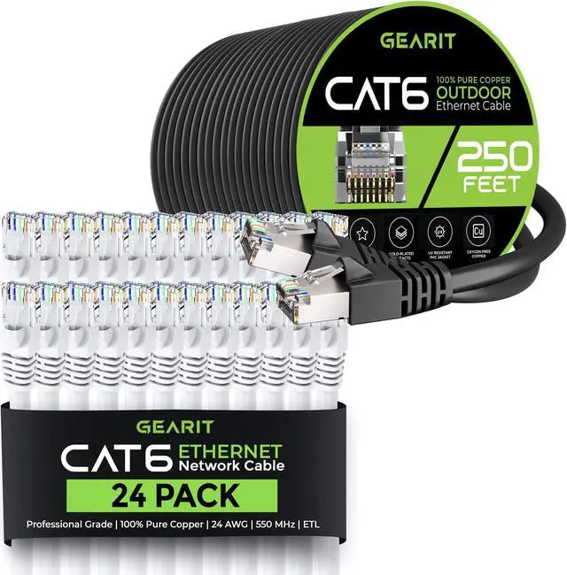 24Pack 6ft Cat6 Ethernet Cable & 250ft Cat6 Cable