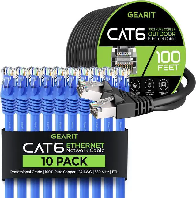 GearIT Outdoor Cat6 Patch Cables.Thanks to its rugged PVC jacket, this cable is perfect for direct burial in the ground. It withstands low and high temperatures, dust, and dirt.