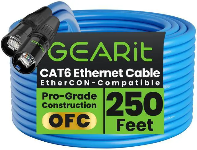 ^^ CAT6 Ethernet Speed - This shielded Ethernet cable meets the CAT6 specification for light-speed data transfer up to 10 Gbps. CAT6 has more stringent standards than CAT5, making this the ultimate networking cable for demanding digital audio standards like Dante and DMX signals that control hundreds of stage lights at once. ^^ DMX or Analog Signals - When used with a GEARit extender, this Ethernet cable carries up to 4 DMX or XLR audio signals over a shielded, balanced connection. This setup is ideal for linking stage lights and audio equipment across stages, DJ booths and studios.