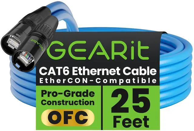 ^^ CAT6 Ethernet Speed - This shielded Ethernet cable meets the CAT6 specification for light-speed data transfer up to 10 Gbps. CAT6 has more stringent standards than CAT5, making this the ultimate networking cable for demanding digital audio standards like Dante and DMX signals that control hundreds of stage lights at once. ^^ DMX or Analog Signals - When used with a GEARit extender, this Ethernet cable carries up to 4 DMX or XLR audio signals over a shielded, balanced connection. This setup is ideal for linking stage lights and audio equipment across stages, DJ booths and studios.