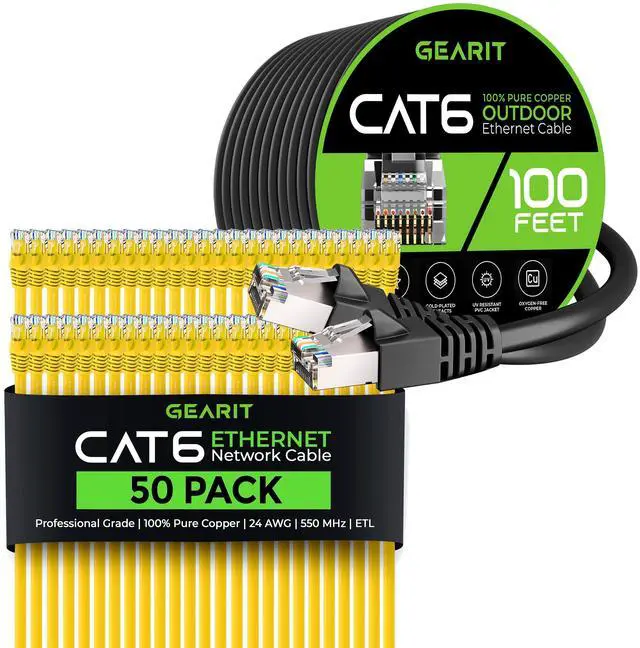 GearIT Outdoor Cat6 Patch Cables.Thanks to its rugged PVC jacket, this cable is perfect for direct burial in the ground. It withstands low and high temperatures, dust, and dirt.