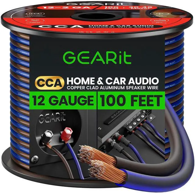 GearIT Pro Series 12 Gauge (2 x 4mm) Speaker Wire Cable (30.4 Meters / 100 Feet/Black Blue) CCA HiFi Audio Speaker Cable Great Use for Car Audio and Home Theater Surround Sound Systems
