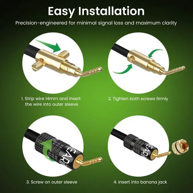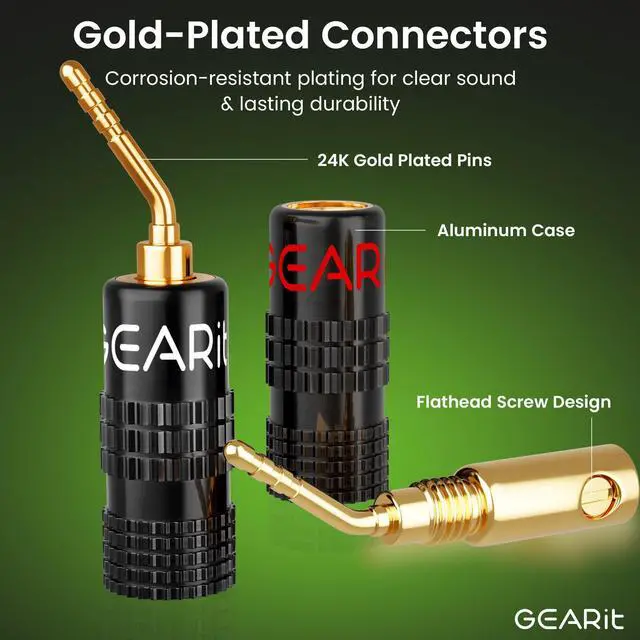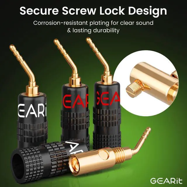 2MM PIN SCREWS SPEAKER PINS - GearIT Speaker Pin Connectors with Pin Screw Type Speaker Wire Plugs provide optimum signal transfer from speaker wires. 2mm Pin screws keep the speaker wire connection strong and secure. ^^ EASY TO INSTALL - GearIT Speaker Wire Plug Connectors make speaker wire installation easy and is best suited for Spring Clips, Speaker Wire Terminals, Speaker Wire, Wall Plate, Home Theater, Audio/Video Receiver, Amplifiers and Sound Systems ^^ COLOR CODED GOLD PLATED CONNECTORS - Gold plated banana plug connector pins resist corrosion for long lasting use.