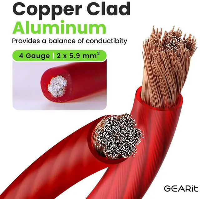 GEARit 4 Gauge Wire (50ft Each - Black/Red Translucent) Copper Clad Aluminum CCA - Primary Automotive Wire Power/Ground, Battery Cable, Car Audio Speaker, RV Trailer, Amp, Electrical 4ga AWG 50 Feet
