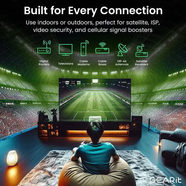 WIDE APPLICATIONS - built for indoor or outdoor use, can be used for various applications that include Satellite installations, ISP Internet Cable, video security, video transmission and cellular signals booster, etc. ^^ HIGHEST QUALITY MATERIAL AND TIER 1 MANUFACTURE PROCESS - The cable is made of OFC Oxygen Free Copper, triple foil shielding, you can rely on our to be cable to meet or exceed any other wire on the market to handle any transmission of data you need. ^^ DEPENDABLE CONNECTION - using OFC 18awg conductors and a rubber boot, it can handle weather situation and has a high moisture tolerance that you don't have to worry about the wire getting rusted.