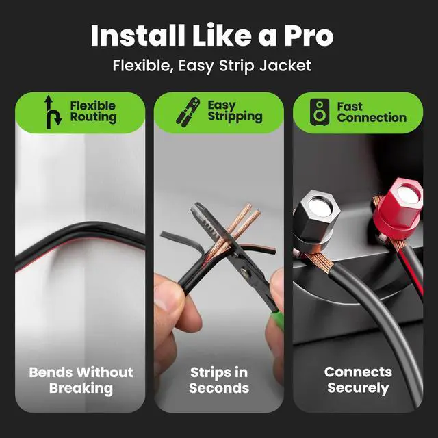 Use: Designed for professional and DIY users, this speaker wire 10 gauge is easy to cut, strip, and insert into banana plugs, spade tips, or directly into speakers making installation fast and hassle-free.