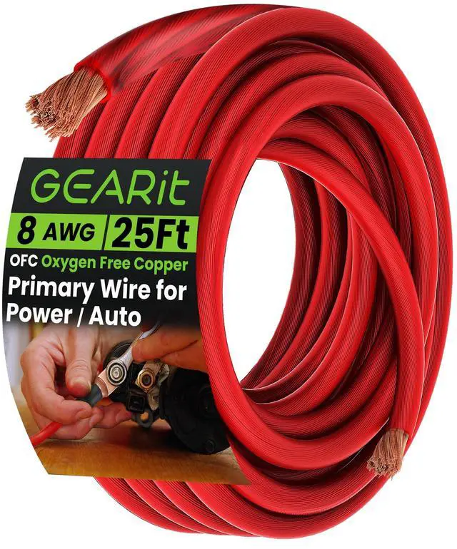 GEARit 8 Gauge Wire Oxygen Free Copper OFC (25ft - Red Translucent) 8 AWG - Primary Automotive Wire Power/Ground, Battery Cable, Car Audio Speaker, RV Trailer, Amp, Electrical 8ga - 25 Feet