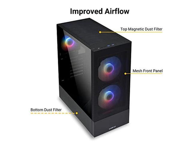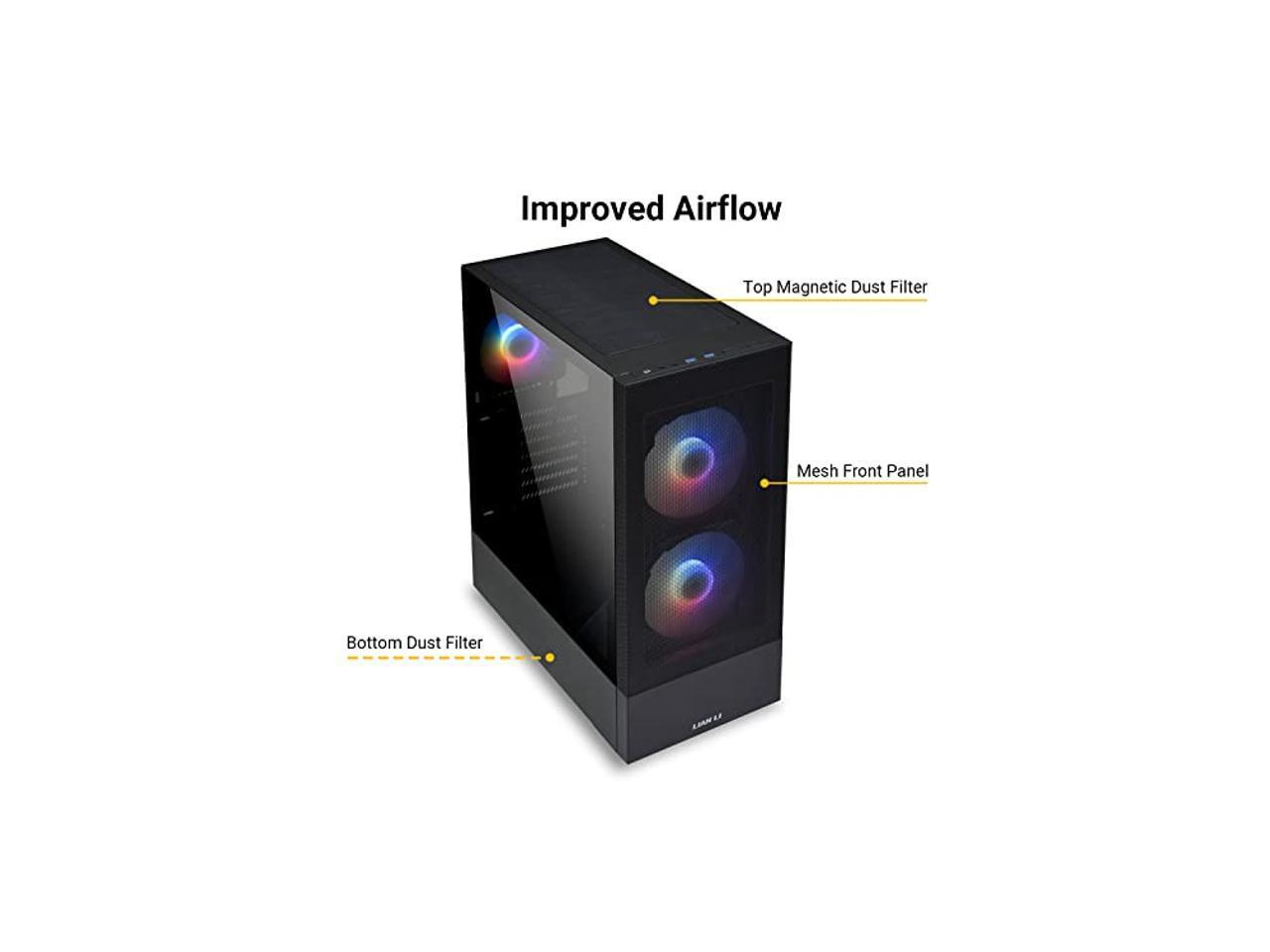 LIAN LI High Airflow ATX PC Case, RGB Gaming Computer Case, Mesh Front Panel Mid-Tower Chassis w/ 3 ARGB PWM Fans Pre-Installed, USB Type-C Port, Tempered Glass Side Panel (LANCOOL 205 MESH C, Black)