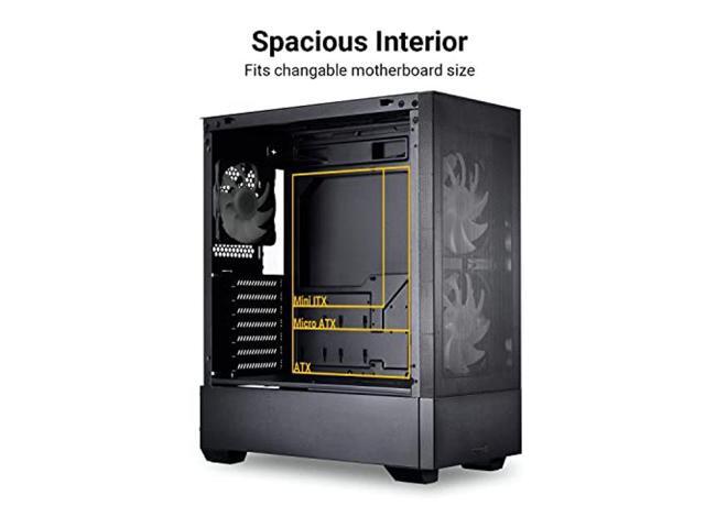 - ATX Case with tempered glass side panel allowing for a great view of your RGB components. Steel front panel/main structure with plenty of room, supports motherboard size of ATX, Micro ATX (mATX) and Mini-ITX