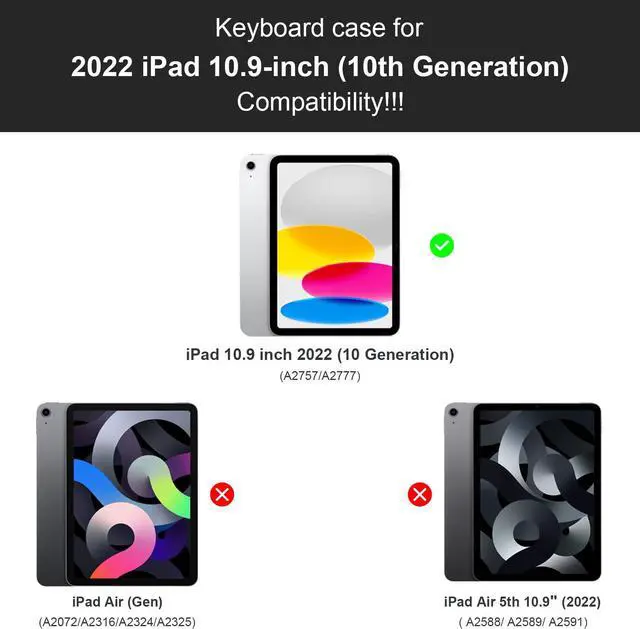 [(iPad 10th Generation Case with Keyboard)] Only Compatible with new iPad 10.9 10th Gen 2022 (Model Number: A2757 A2777), Notice: NOT fit iPad Air 10.9 5th generation 2022, iPad Air (4th generation) 10.9 2020.Please check your iPad model before purchasing. Our iPad 10th generation keyboard case can provides comprehensive protection from scratches, bumps or dents, and protects your iPad from various fall accidents. protects against fingerprints, impacts, scratches and dust.