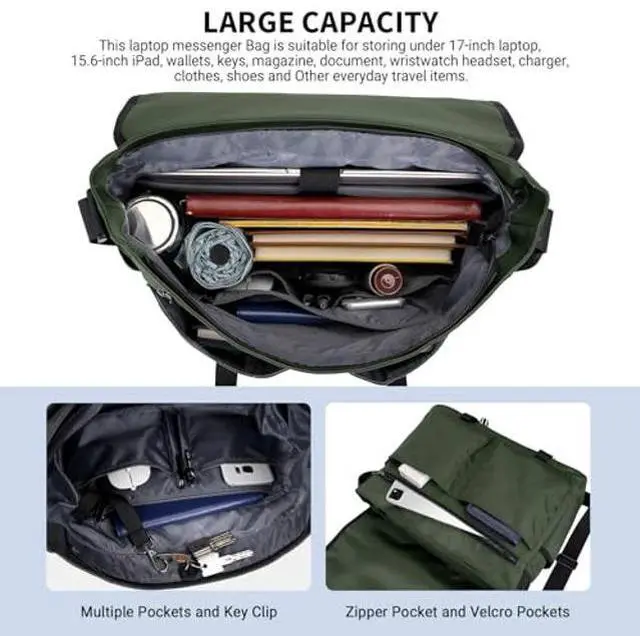Large Capacity:This nylon laptop messenger Bag is suitable for storing under 15.6 inch laptop,wallets,keys,magazine,document,wristwatch,headset,charger,clothes, shoes and other everyday travel items.