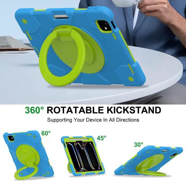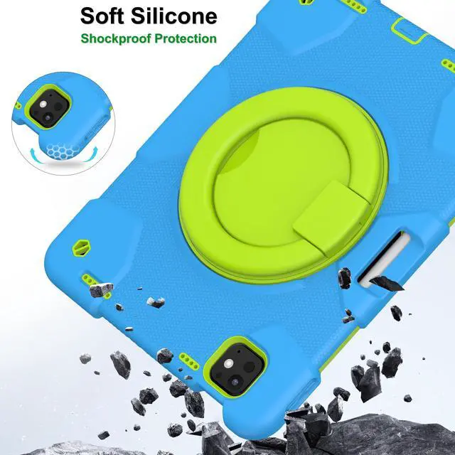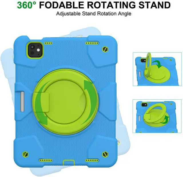 Andnary New Case for iPad Pro 11 Inch Case 2024 5th Generation (M4), Heavy Duty Shockproof Protective with 360deg Rotating Handle/Bracket/Pen Holder/Shoulder Strap for Adult Kid, Blue+Green