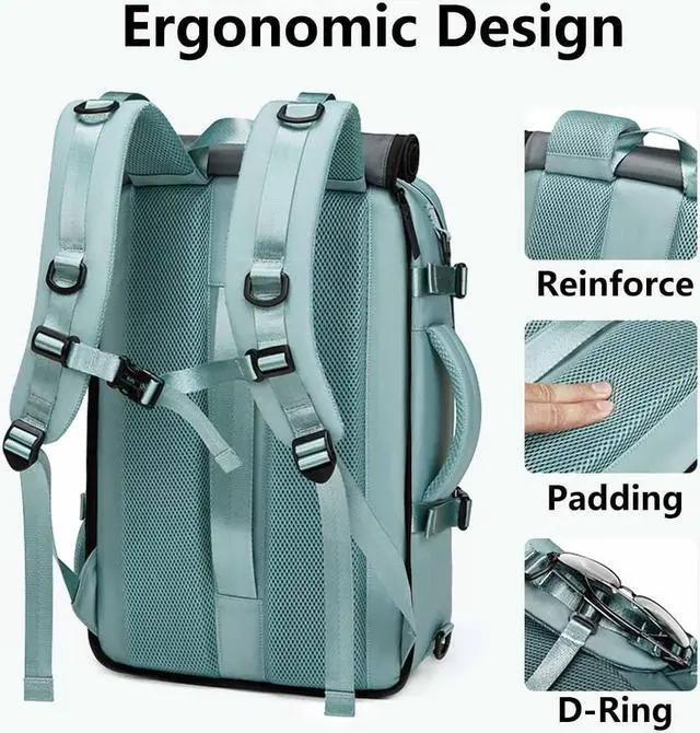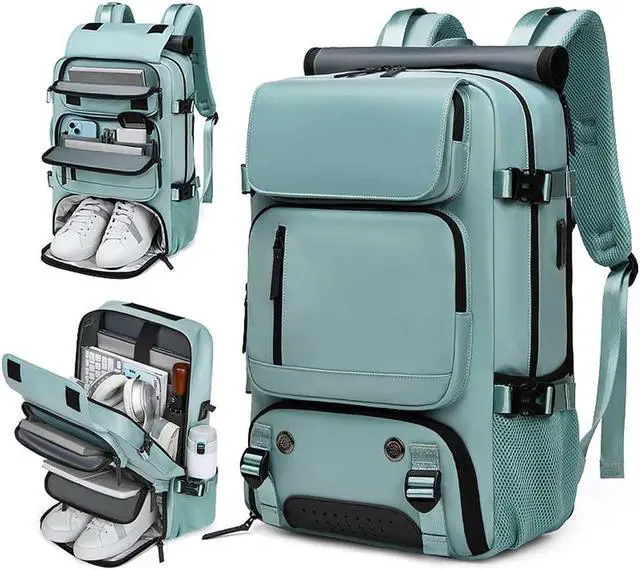 Baolab Travel Backpack for Women Men Carry On Backpack fits 16" Laptop Waterproof Convertible Backpack with Shoe Compartment (Green)