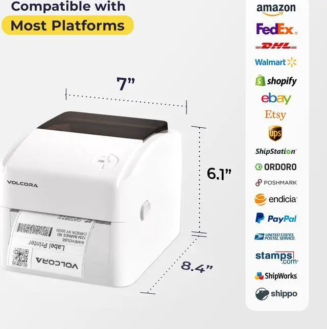 COMPATIBLE with A BROAD RANGE of PLATFORMS - The label printer seamlessly integrates with major e-commerce platforms such as , Etsy, and eBay, and popular shipping carriers like USPS and FedEx, simplifying the label creation process and enabling efficient printing of shipping labels. Its compatibility with Windows, Linux, and Mac operating systems, along with its ability to emulate Zebra ZPL, ensures that it is accessible and convenient for users of various workflows and platforms.