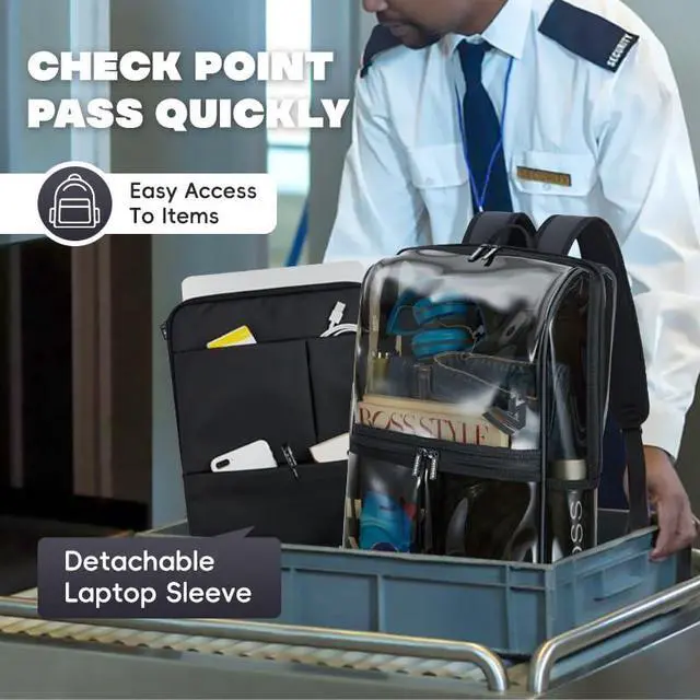 [Detachable Laptop Sleeve] Large clear backpack heavy duty inspired by the Japan Design Award, we redesigned the laptop sleeve which can be used independently and has more storage pockets. The detachable design of the laptop bag is suitable for office and buisness work needs or carry out