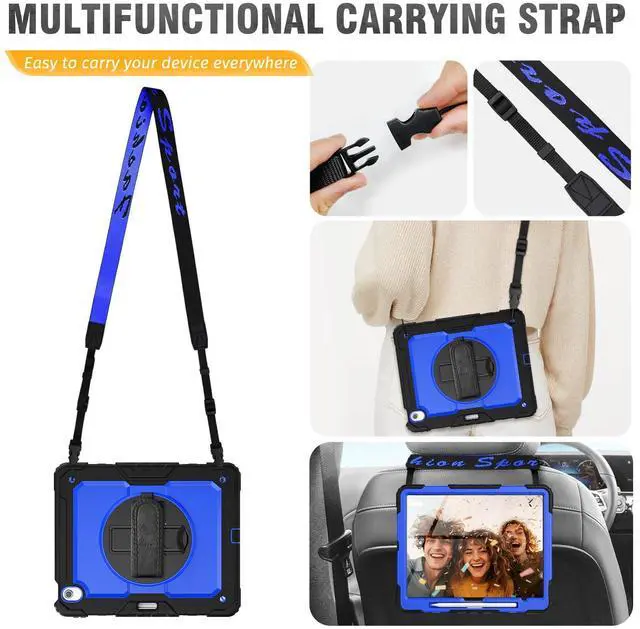 HXCASEAC Case for iPad Air 13 inch (M3 2025) & (M2 2024), Shockproof Design with Pencil Holder/Screen Protector/Rotating Hand Strap, Protective Cover for iPad Air13 (A2898, A2899, A2900) - Blue