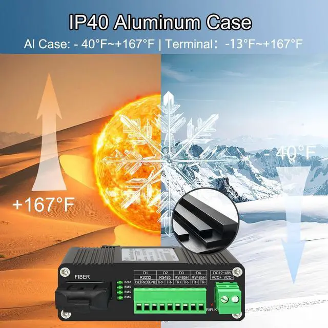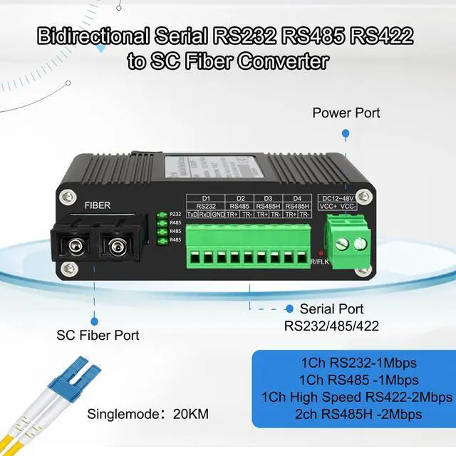 * Extends Bi-directional RS-232/RS-485/RS-422 up to 20Km on 1310nm single-mode SC fiber