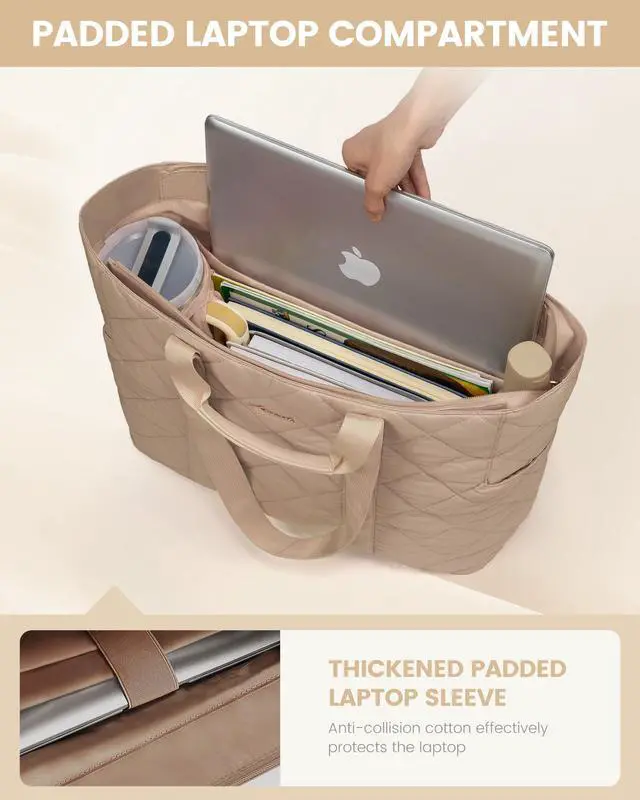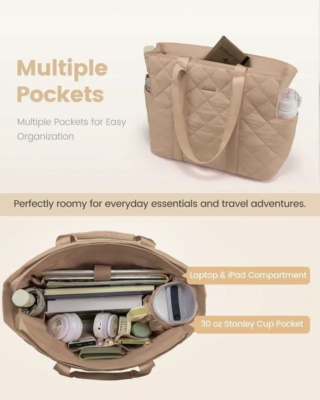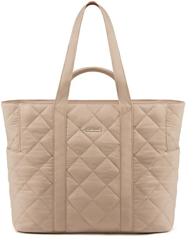 LOVEVOOK Puffer Tote Bag for Women, Fits 17 Inch Laptop, Quilted Women's Tote Bag with Zipper, Large Puffy Work Bag, Purse, Shoulder Bag for Travel, Beach, Gym, Everything, Weekend