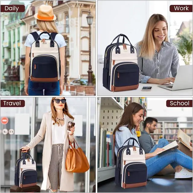 LOVEVOOK Backpack for Women,Laptop Backpack Women,Fits 17 Inch Laptop Bag,School Backpacks,Fashion Travel Work Anti-theft Bag,Waterproof Business Computer College Backpack Purse,Beige-Blue-Brown
