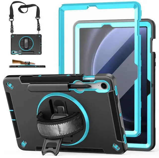 Case for Galaxy Tab S9/S9 FE 5G 2023: TPU Cover for Samstng Tablet S9 11" /S9 FE 10.9" with Screen Protector- Stand- Handle-Shoulder Strap-S-Pen Holder- Dark Blue- Mint Green