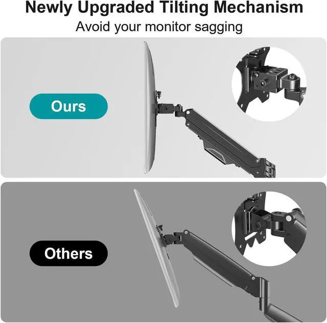 Avoid Monitor Sagging - The tilt joint of this single monitor stand has been enhanced, the two limit screws are specifically designed to effectively avoid sagging issues while keep the monitor stay in vertically. Additionally, the ultrawide monitor arm can extend up to 20.87", making it ideal for deeper or larger desk. It can also be effortlessly raised up to 22.4", providing users with an optimal range for height adjustment.