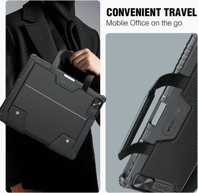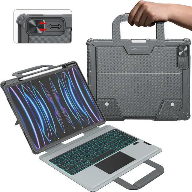 [(Why Nillkin upgraded the keyboard case)] - The portable ipad pro 12.9 case with keyboard with additional magnetic carrying handle can make your office travel more convenient. The ipad pro 12.9 case with keyboard features a trackpad with haptic feedback, a great typing experience with a function row, USB-C pass-through charging, 100 hours of battery life, Apple Pencil Holder, Powerful front and back protection.