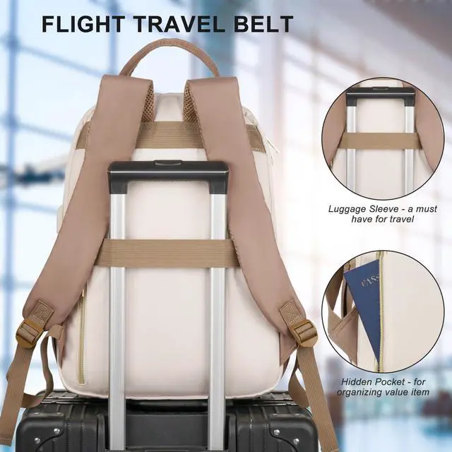 RJEU School Backpack for Teen Girl, Aesthetic Schoolbag Bookbag with 15.6 -Inch-Laptop Compartment for Women College Student Work Travel Nurse Teacher, Khaki-Beige