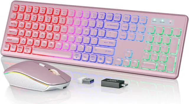 Wireless Keyboard and Mouse Combo - RGB Backlit, Rechargeable & Light Up Letters, Full-Size, Ergonomic Tilt Angle, Sleep Mode, 2.4GH z Quiet Keyboard Mouse for Mac, Windows, Laptop, PC, Trueque, Rose