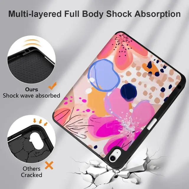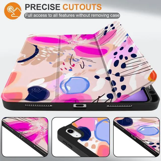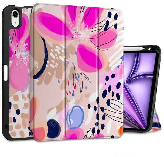 DONGKE for iPad Air 11 Inch Case M3 2025 / M2 2024 & iPad Air 5th 2022 / 4th Generation 2020 10.9 Inch, Ultra Thin Soft TPU Back Cover with Pencil Holder Support Auto Wake/Sleep, Floral Artistic