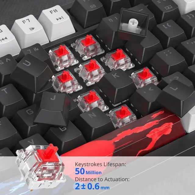 Hot-Swappable Custom Keyboard - Equipped with premium red switches, this black gaming keyboard o