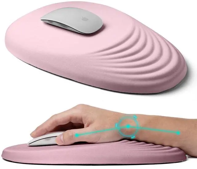 Ergonomic Mouse Pad with Wrist Rest Support, Mousepad Relief Carpal Tunnel Pain, Entire Memory Foam Mouse Pad with Non-Slip PU Base, Wireless Mouse Pad, Pink