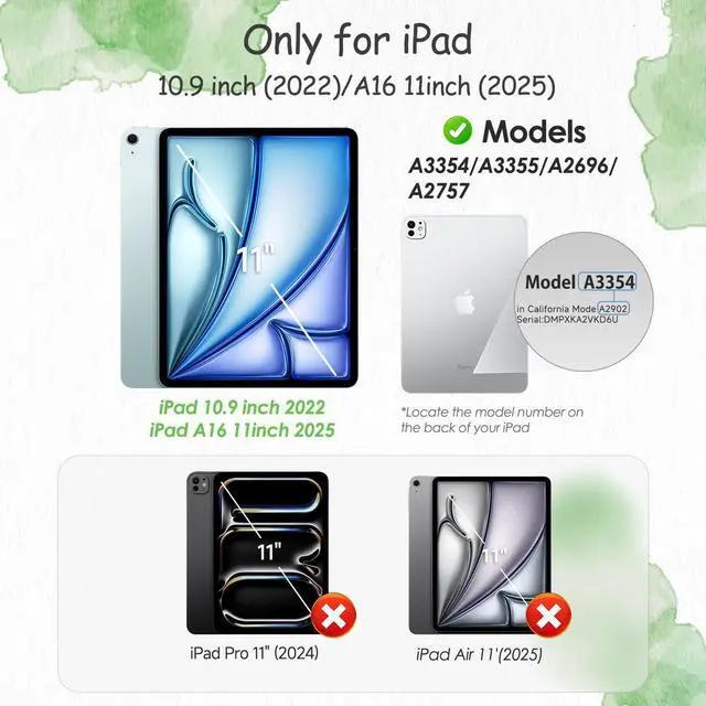 [(Perfect Compatibility)] Compatibility: Specifically compatible with iPad 11th/10th Gen. A16 (11/10.9 Inch, 2025/2022), compatible with the Apple Pencil. Fit models: A3354, A3355 A2696 A2757 A2777 . Please check back bottom of your device to find the model number.