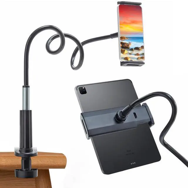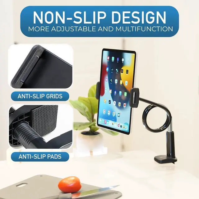 # Flexibility and Convenience: Perfect for a gooseneck Kindle stand, iPad mount and tablet holder in bed or anywhere you need a flexible fit. This gooseneck stand is the ideal solution for those looking for a fully rotating Kindle bed holder, a bedside tablet and phone holder, or a tablet holder that combines durability, stability, and flexibility. Improve your convenience and enjoy your devices anytime, anywhere with our high-quality gooseneck mount. RELAX YOUR HANDS, BE HAPPY AND LIFE THE LIVE.