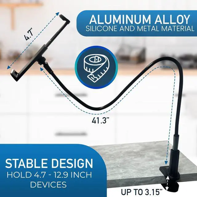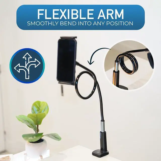 Its sturdy design makes it the perfect holder for keeping your device secure and accessible, while the flexible gooseneck arm lets you find the perfect angle for effortless viewing.