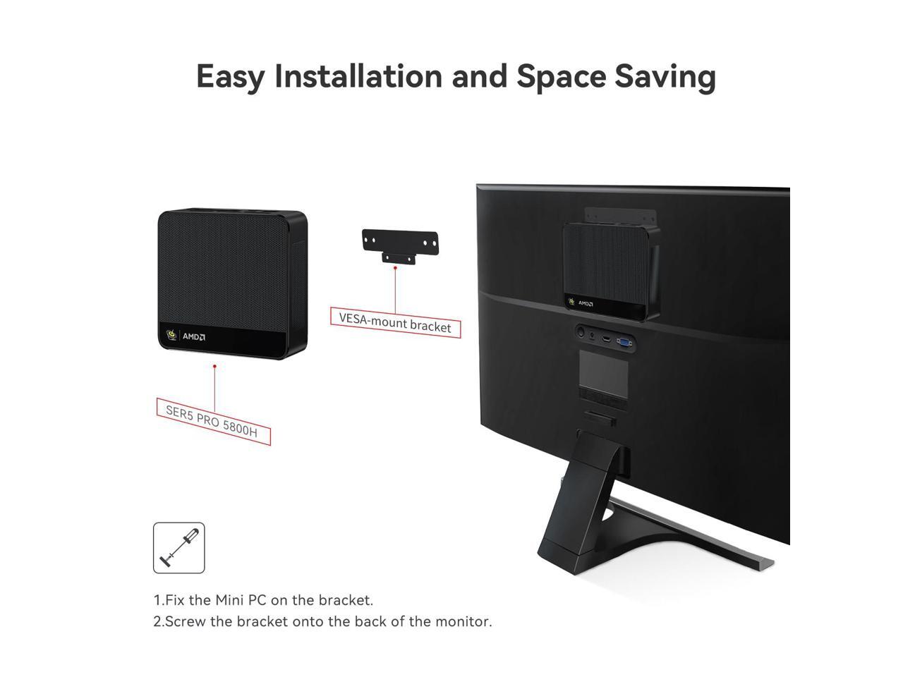- [(Large storage capacity, Fast speed)] SER5 PRO ryzen7 5825U mini pc comes with 16GB DDR4 RAM(2 x 8GB). Dual channel DDR4 upgradeable to max 64GB(2 x 32GB). 500GB M.2 PCIe4.0 2280 SSD(upgradeable to max 2TB). Support up to 2TB external 2.5-inch 7mm HDD expansion (not included), which will have powerful loading and processing capabilities for heavy loading work.